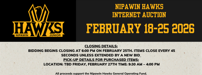 Our much-anticipated Hawks Auction is back! Get ready to bid on some amazing items and support your Nipawin Hawks.