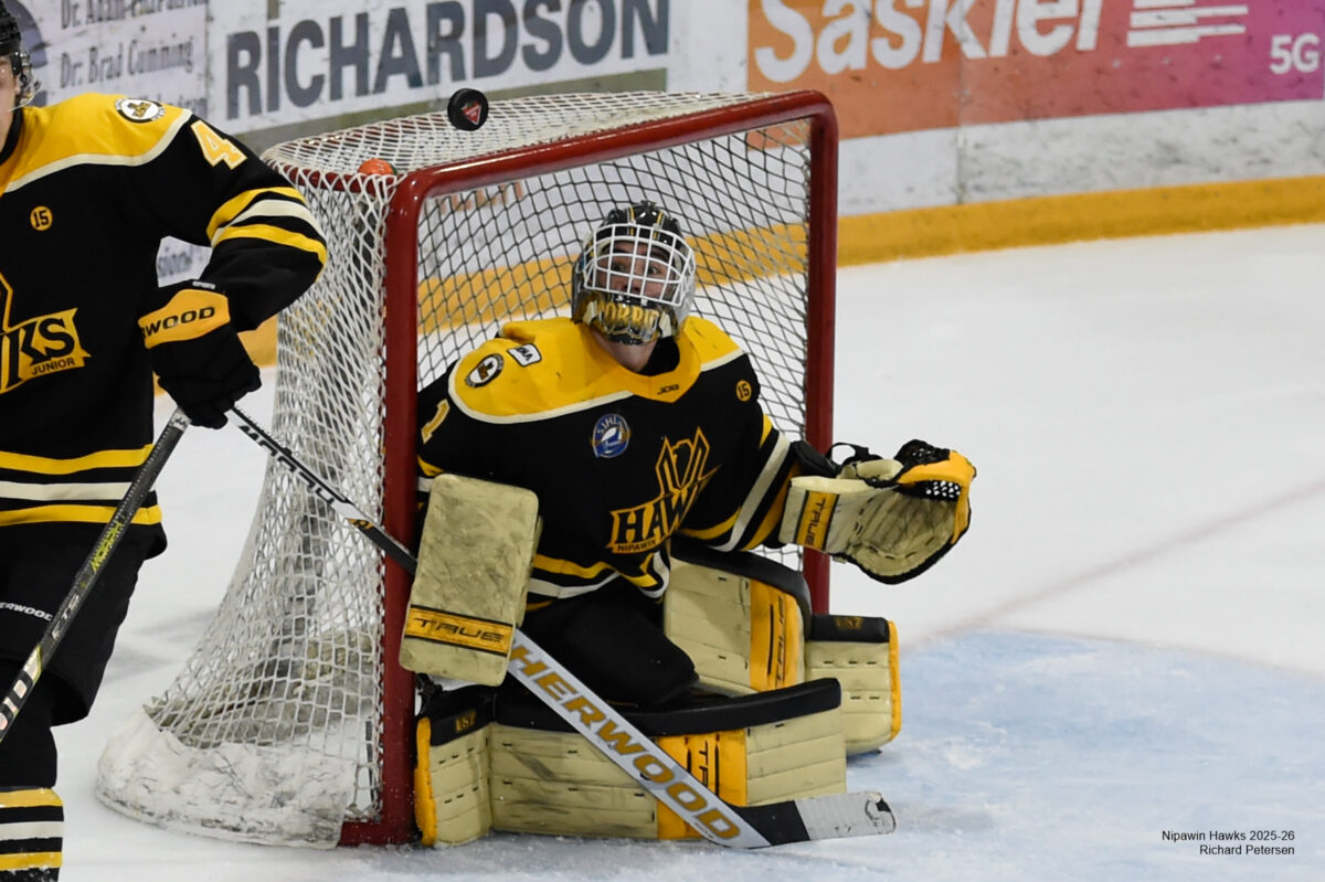 The Hawks opened the scoring in the first period when Assistant Captain #7 Eric Hoiness (14) netted his 14th goal of the season. He was assisted by #28 Sean Shiels (7) and Assistant Captain #16 Mason Karakochuk (20) to give Nipawin the early lead.